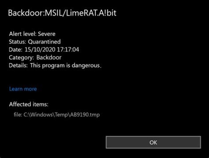 | Microsoft | Trojan:Win32/Wacatac.B!ml |